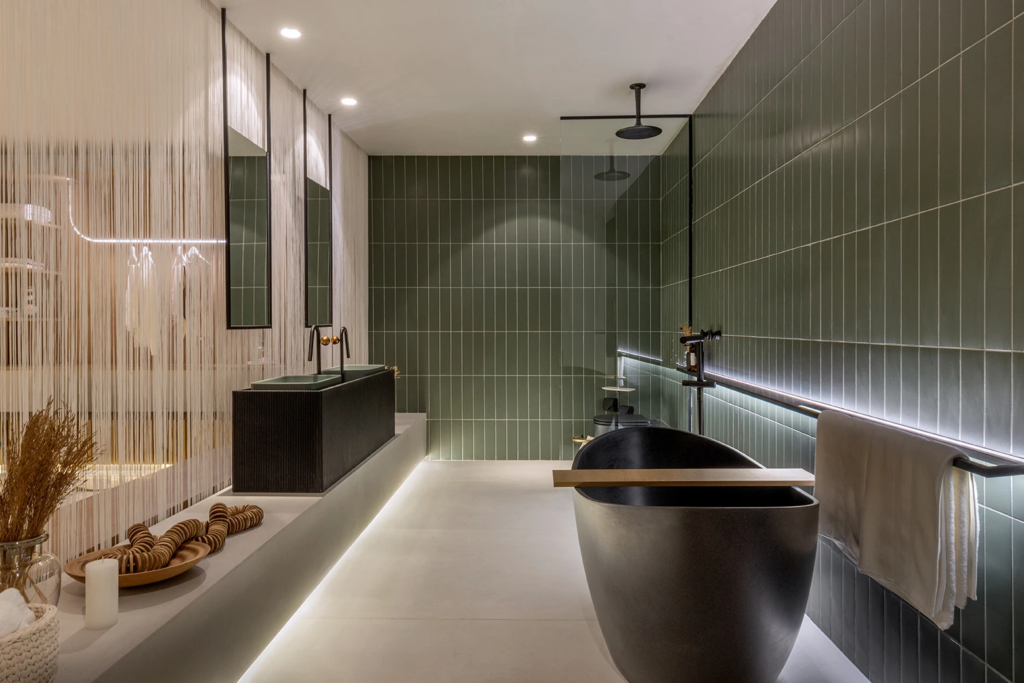 Adicionar uma banheira de imersão proporciona relaxamento profundo e um toque de indulgência.