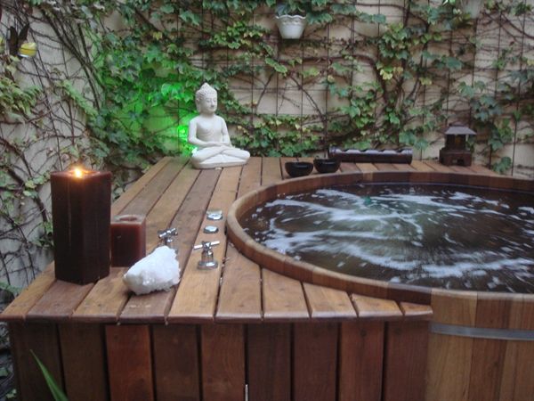 Imagem 38: Aos amantes de madeira, saiba que os ofurôs de madeira são clássicos.